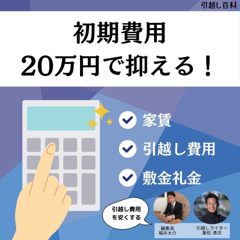 徹底して節約すれば、低予算で引越しできる可能性があります。そこで、ここでは引越し予算が20万円しかないという条件で、どのようにすれば引越しの初期費用を予算範囲内に収められるのかについて、具体的な方法を解説していきます。