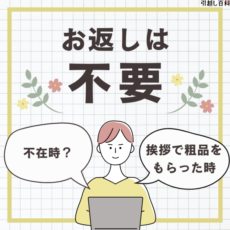 引越しの挨拶はお詫びを含めた内容になるためお返しは不要になります。普段近所ですれ違う時にしっかり挨拶しとけば問題ありません。