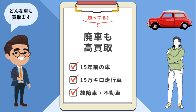買取価格の高さだけで廃車買取サービスを選ぶと、引き取りのタイミングで減額されてしまったり、回収してもらった車を不法投棄されたりするなどのトラブルに巻き込まれる可能性があります。そうならないためにも、廃車買取サービスを選ぶときには、買取価格だけでなくサービスの信頼性も重視しましょう。