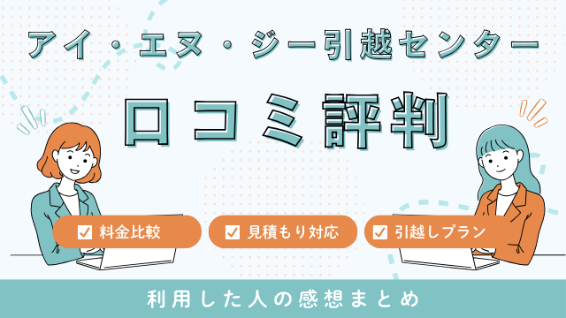 引越し業務以外にも運送、解体工事、廃棄処分なども行っており、10年以上経験のあるスタッフが多く活躍しております。アイ・エヌ・ジー引越センターの口コミ、実際の料金、サービスを詳しく解説してきます。