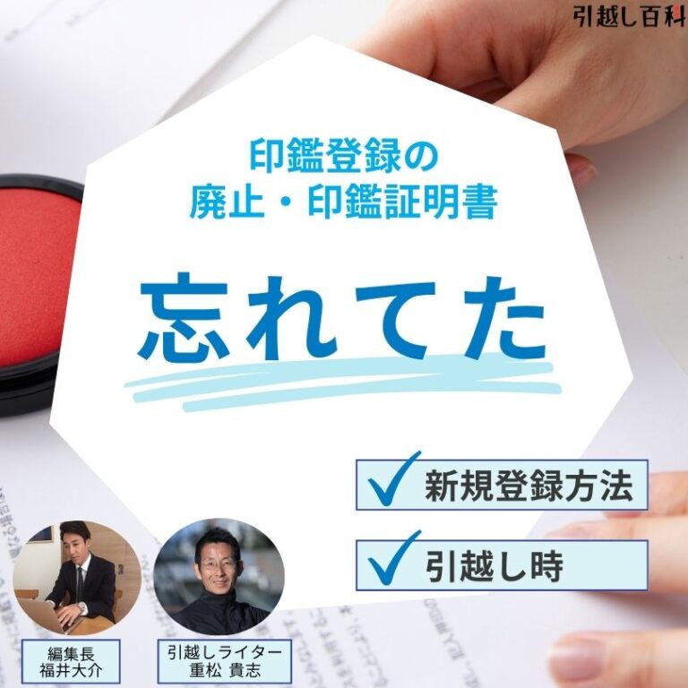 印鑑の登録は市区町村ごとに管理しており、引っ越しをすることで違う市区町村に移転する場合には、旧住所で廃止して新住所で新しく登録する必要があります。転出届を出すだけで同時に廃止してくれる自治体もありますので、事前に確認しておきましょう。
