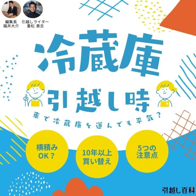 冷蔵庫は横積みで運んではいけないとされていますが、新居に設置した後に半日放置して潤滑オイルをコンプレッサー内に戻せば、横積みでも問題ありません。もちろん自己責任ということにはなりますが、その方法で壊れた人はほとんどいませんので安心して横積みしてください。