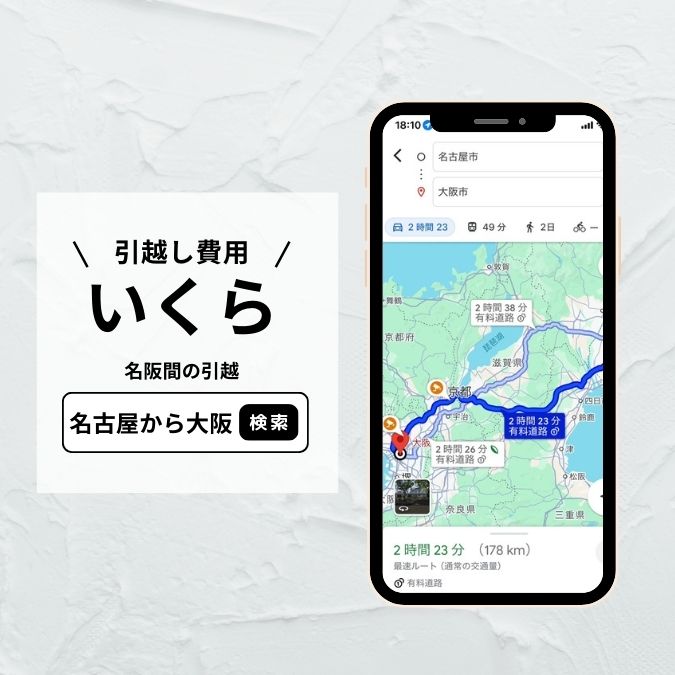 名古屋から大阪までの距離は、高速道路を使って約180kmになります。これくらいの距離だと翌日搬入になるのではないかと心配している人もいるかもしれませんが、夕方の搬出にならないかぎり、基本的には当日搬入となります。