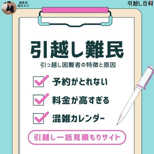 引っ越し難民とは、引っ越しをしたいのに希望日や希望の予算内での引っ越し予約がとれないことです。引っ越し難民の人の特徴は以下のように大きく2つです。