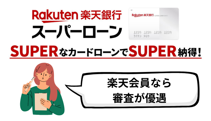 それが楽天銀行スーパーローンです。楽天会員なら審査が優遇されるなど、多くの人にとって利用しやすいカードローンとなっています。楽天銀行スーパーローンには他にもおすすめのポイントがありますので、詳しく見ていきましょう。